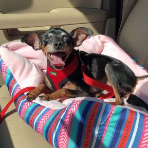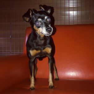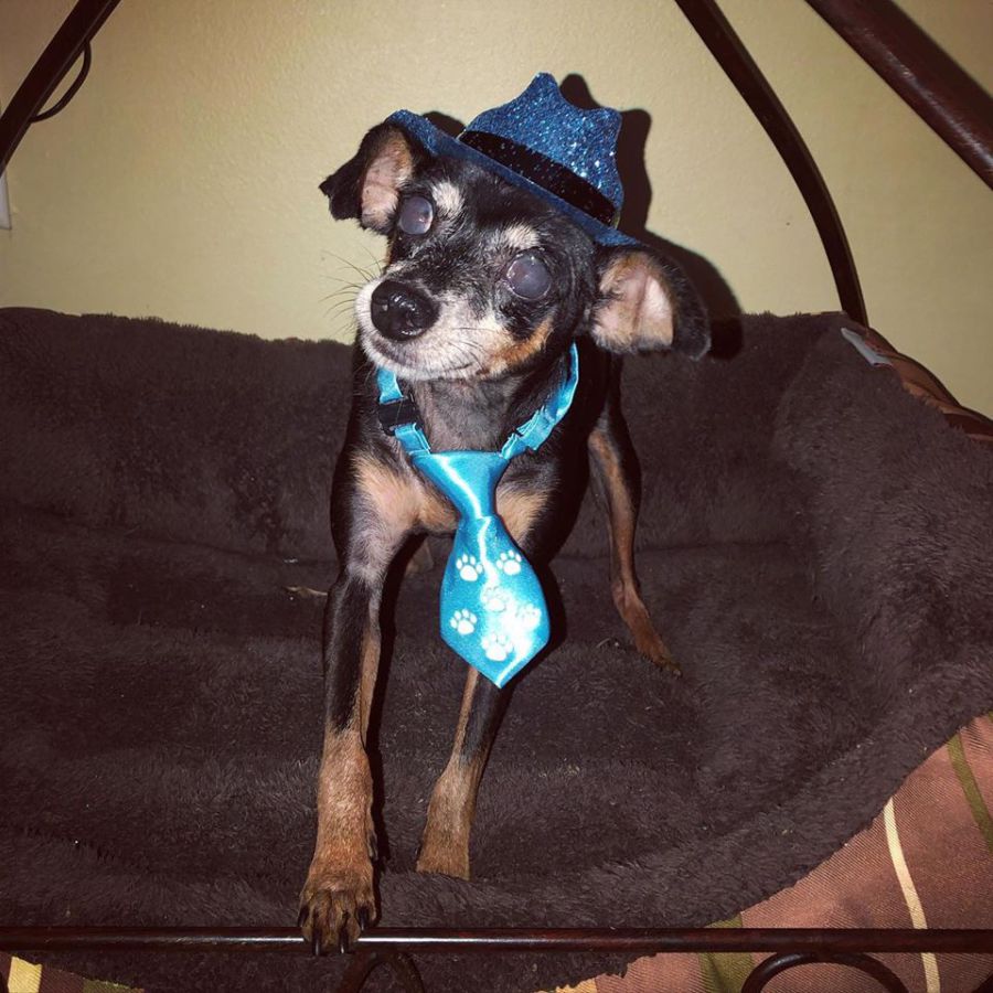 This stunning little nugget is our Atticus. Atticus joined us from our local animal control. He is a very mellow and independent nugget who loves ear scratches and dinner time. He doesn't mind other dogs but keeps to himself most of the time, likely due to his blindness. Atticus has dry eye which seems to have been left untreated for many years causing so much scaring to his eyes that he can no longer see. But that doesn't slow him down at all. He does require eye drops a few times a day but he is otherwise a very happy, healthy, and loving little boy.If you would like to give this stunning little nugget his happy fur ever after please email us at nuggetvillebrigade@gmail.com You can also follow Atticus on facebook, his folder link can be found here
