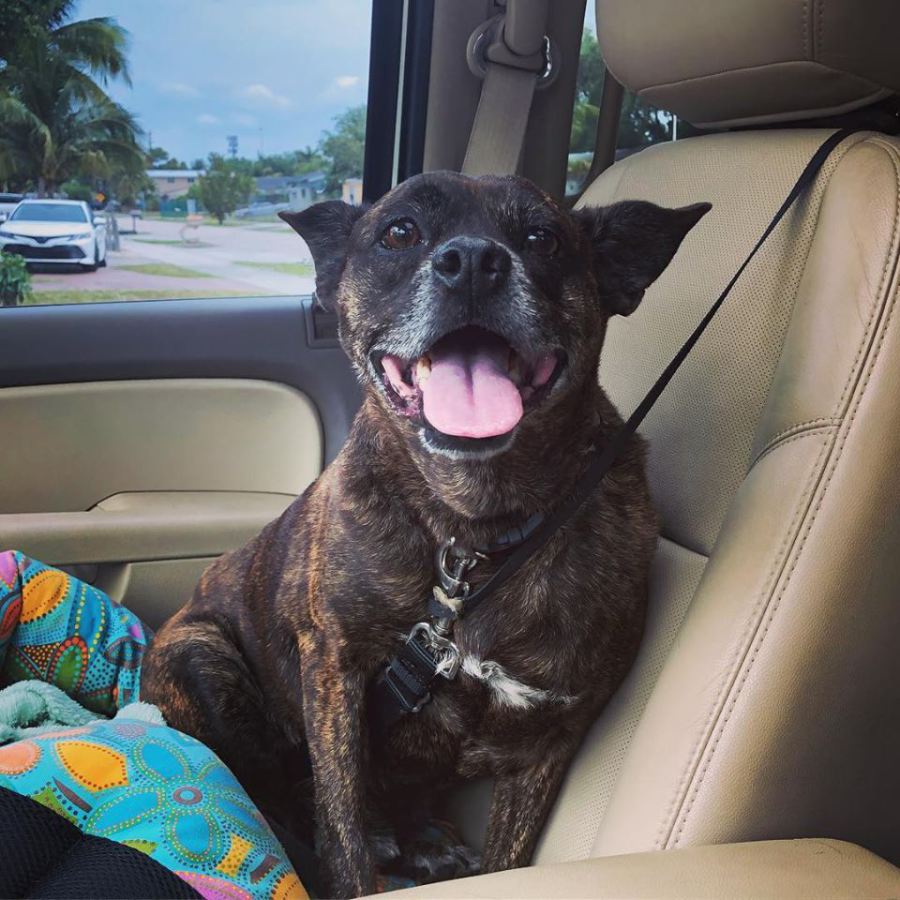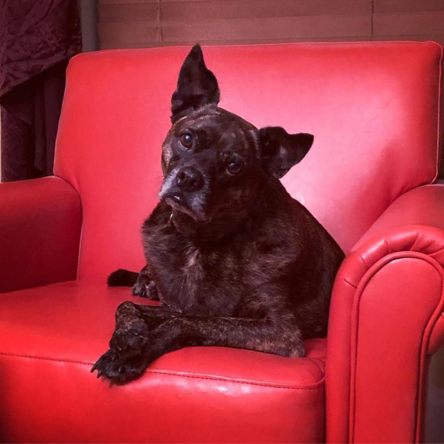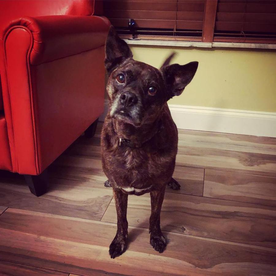This sweet face belongs to our nugget Buster. He is an 8 year old 35 pound Pug/Boxer mix. He joined us when his family could no longer care for him. He is the perfect InstaDog with the silliest