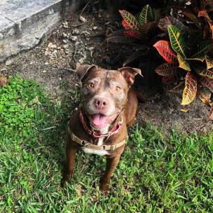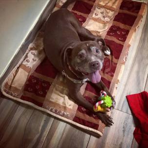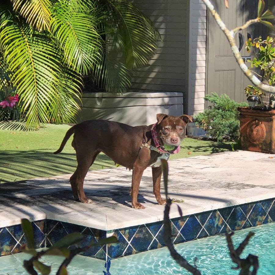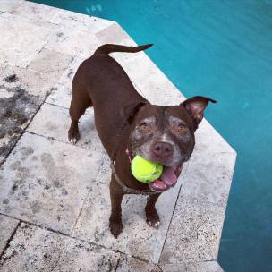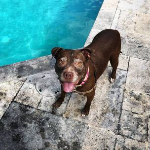 This adorable nugget is our girl Sandy. She is around 8 years old and quiet the character. She somehow landed herself in our local animal control and her family never came looking for her. She absolutely loves to swim and play fetch and will play for hours on end. Sandy gets very excited to go for car rides and behaves very well in the car. She is housebroken and knows how to sit and give paw. She is ok around other dogs but we do not recommend she be left unattended with them. She doesn't like to share her toys and can get irritated. She would do best as a single dog in a family with no small children, she gets very excited about playing and doesn't always realize how big she is. It is also preferred she have a large yard to run and play in and a pool if possible. She LOVES to swim. If you think you might be able to give Sandy that perfect home he has been dreaming of, please email us at nuggetvillebrigade@gmail.com. You can also follow Sandy on Facebook, her folder link can be found here